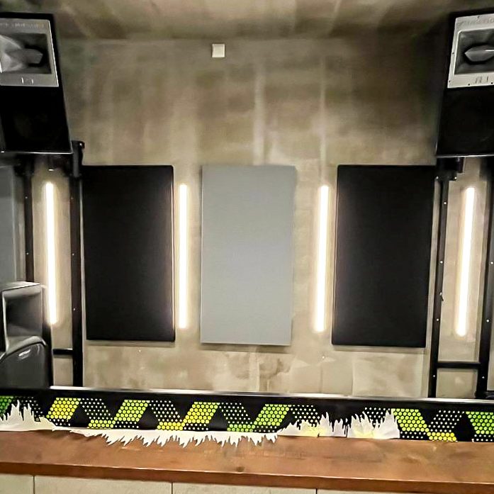 Acoustic Treatment of the rehearsal space in Limassol Client: Music Coworking Category: Acoustic Treatment Date: September 2023 Full band rehearsal room acoustic treatment project, using corner bass traps, ceiling and wall mounted acoustic panels.