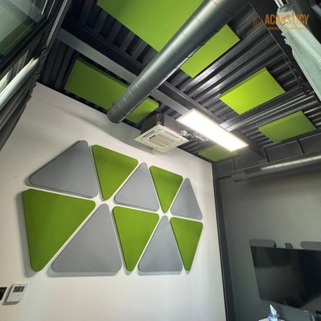 Office acoustic treatment with AcoustiCy “Slim Line“ acoustic panels Client: ScoreWarriors Category: Acoustic Treatment Date: June 2025