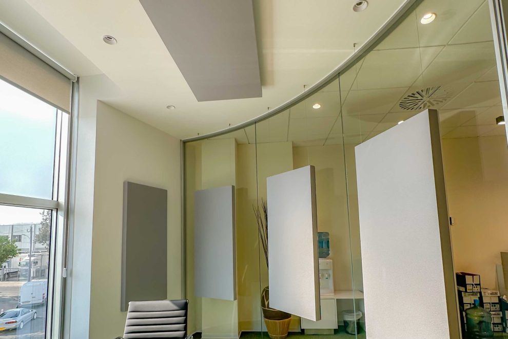 Simple treatment of the meeting room Client: IT Company in Limassol Category: Acoustic Treatment Date: November 2023 Client needed just two acoustic panels on the wall of the meeting room with brand colors. It improved the acoustics of the meeting room by eliminating direct sound reflections.