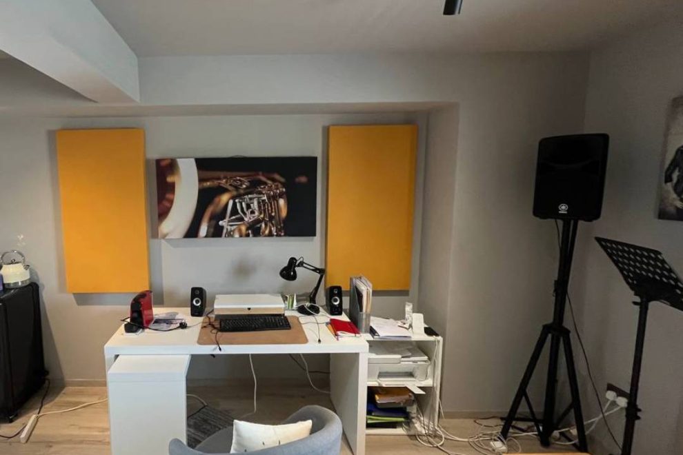 Complete acoustic treatment of home cinema in Ag. Athanasios Client: Andros Category: Acoustic Treatment Date: October 2023 Sound absorbing acoustic panels were used to treat the ceiling surface as well as the walls to each side of the room. Base traps were installed to the corners left and right of the screen. Diffuser panels placed opposite…