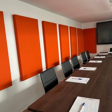 Simple treatment of the meeting room Client: IT Company in Limassol Category: Acoustic Treatment Date: November 2023 Client needed just two acoustic panels on the wall of the meeting room with brand colors. It improved the acoustics of the meeting room by eliminating direct sound reflections.