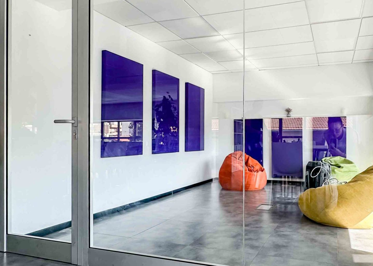 The project task was to create a soundproof space within an office building. We installed a glass soundproof partition with the door as well as the solid soundproof wall. We also reinforced the ceiling and floor tiles with soundproofing materials and added sound absorbing acoustic panels to the walls to create a pleasant acoustics within a room.