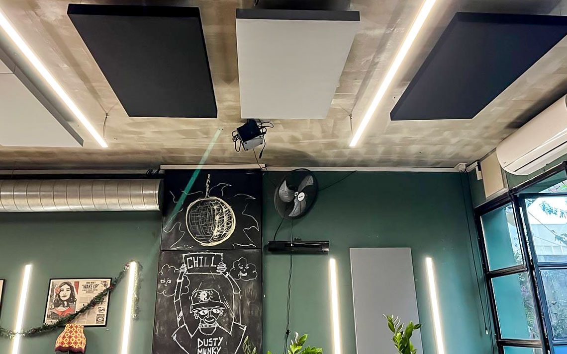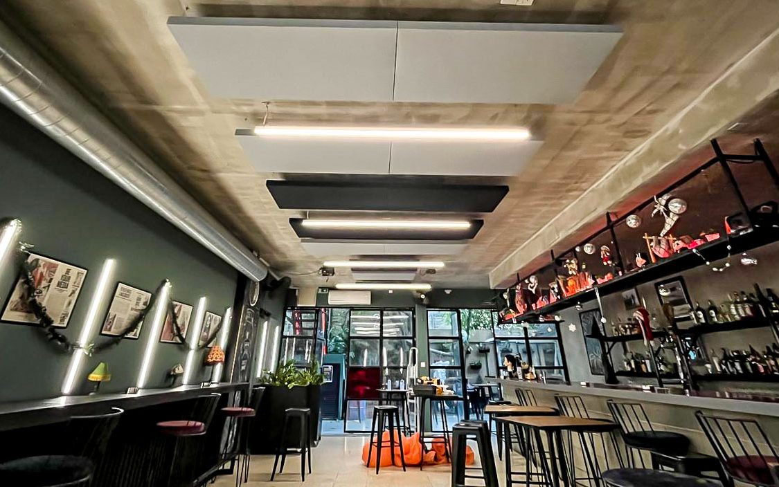 A club in Limassol which needed acoustic treatment Client: Bar in Center of Limassol Category: Acoustic Treatment Date: November 2023 Sound absorbing acoustic panels were used to treat the ceiling surface as well as the wall behind the DJ. Category: Acousticy ProjectsJanuary 19, 2024 Share This Project Share on FacebookShare on Facebook TweetShare on Twitter Pin itShare on Pinterest Share on LinkedInShare on LinkedIn Project navigationPreviousPrevious project:Glass Meeting RoomNextNext project:Nicosia Office GP Lazarou