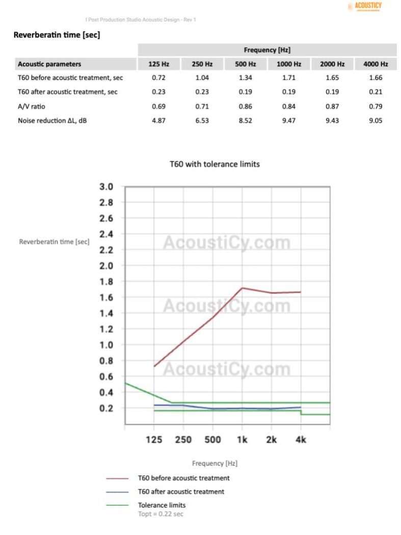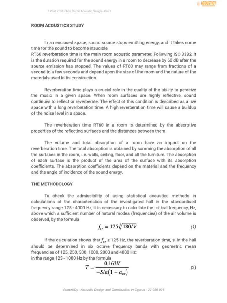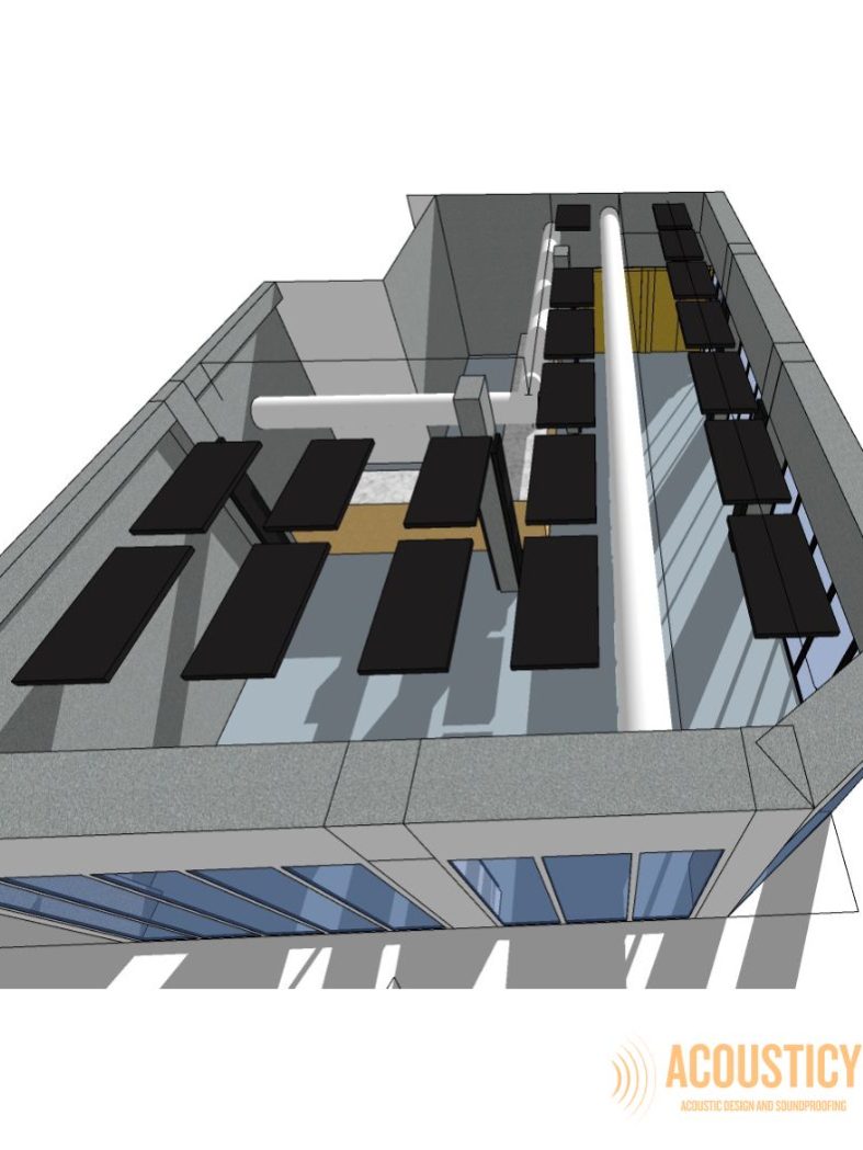 Acoustic design utilizes various methods and acoustic elements to control the acoustic environment of the space, which includes geometry, sound absorbtion, sound reflection, and diffusion. Project evaluation starts with measurements, modelling and study of each specific space and its purpose in order to provide an adequate acoustic solution.
